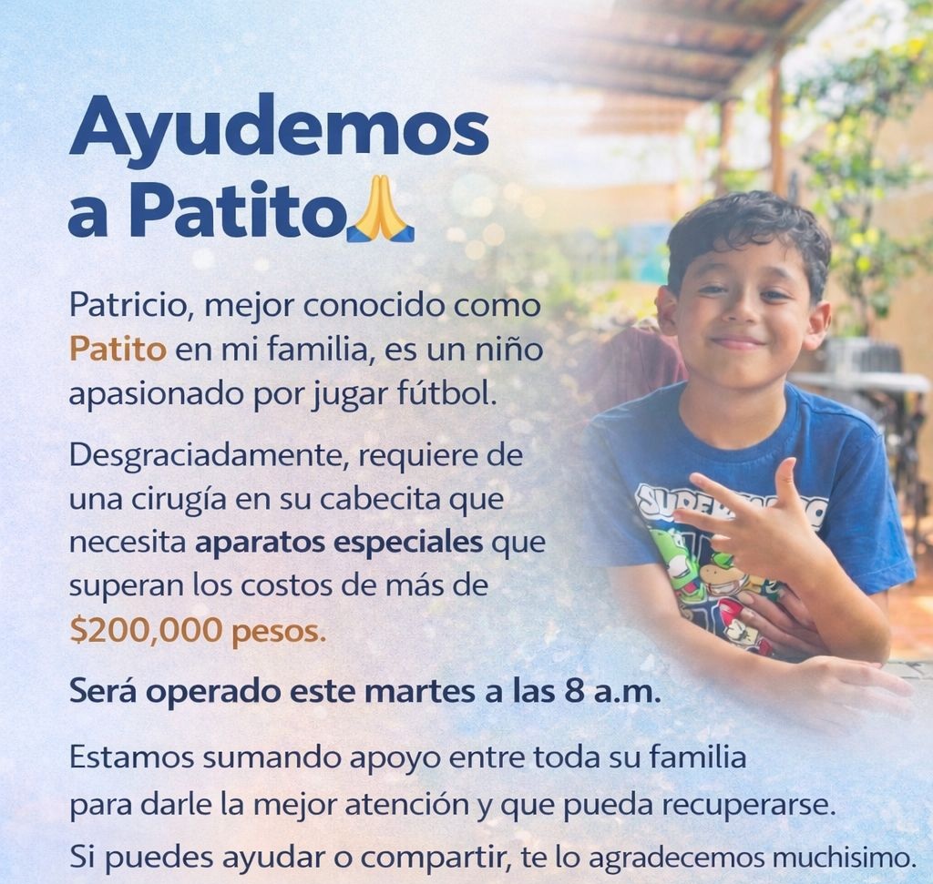 Cada apoyo suma. Cada persona hace la diferencia. Hoy, tú puedes ser parte de la esperanza de Patito.